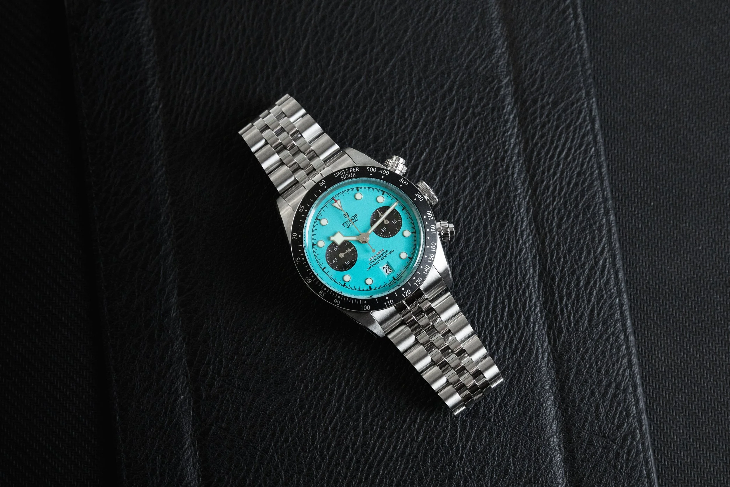 The second release was the Flamingo Blue. Early this year saw the release of a new dial variant for the Black Bay Chrono, now in Flamingo Blue, a colour which is a very striking bright blue, almost more of a turquoise. The name I am not so sure about, as I thought flamingos were known for being a more specific, different colour, but it is a fun follow up to the Miami Pink released earlier in March of 2024. I think it is a fun way for the brand to show that the watch world can be a little less serious once in a while and adding a new chronograph in blue fits right alongside the existing chronograph in pink. It does feel a bit like Tudor was following the Tiffany Blue trend like everybody else after the Phillips charity auction, where a Tiffany Blue dial Patek Philippe 5711 sold for over $6.5M. Lots of other brands soon after released tiffany blue coloured watches, even with Rolex at this year’s Watches and Wonders releasing a turquoise dial for the Daytona. Is this just a ‘trend’ or do you think these new turquoise dials will still be in the brands lineups five or even ten years from now? Only time will tell.